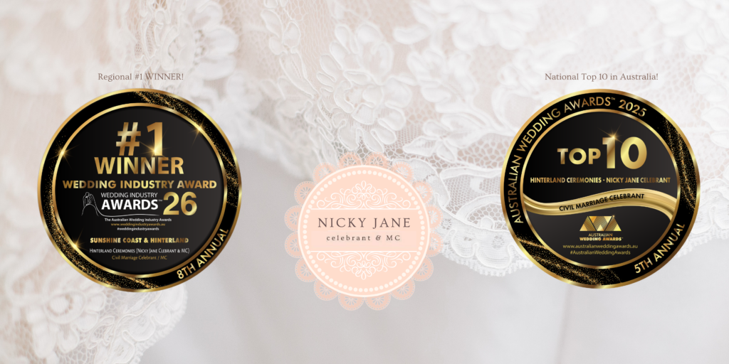Becoming #1 Winner Civil Marriage Celebrant & MC this month (March26), #2 Highly Commended Civil Marriage Celebrant 25, and Top 3 Civil Marriage Celebrant 24, in the Wedding Industry Awards (AWA) Sunshine Coast & Hinterland for the regional awards, is simply a dream come true! I am so grateful to all my married couples for voting for me and very humbled to receive such lovely reviews, kind support and amazing feedback.